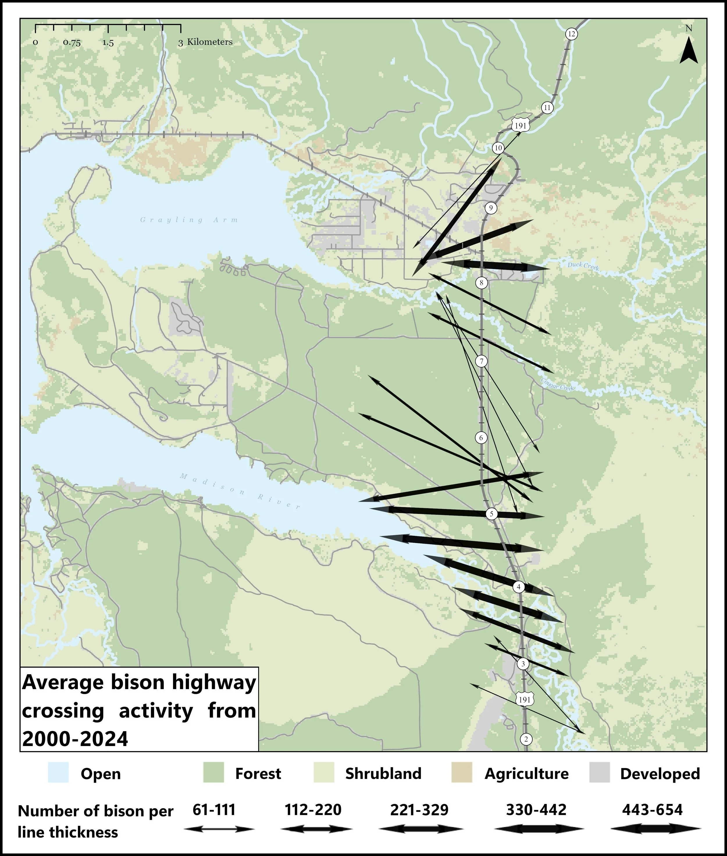 This finding has critical implications for mitigation design along US-191, suggesting that properly placed crossing structures could capture bison migratory routes and that they would be used by the animals.